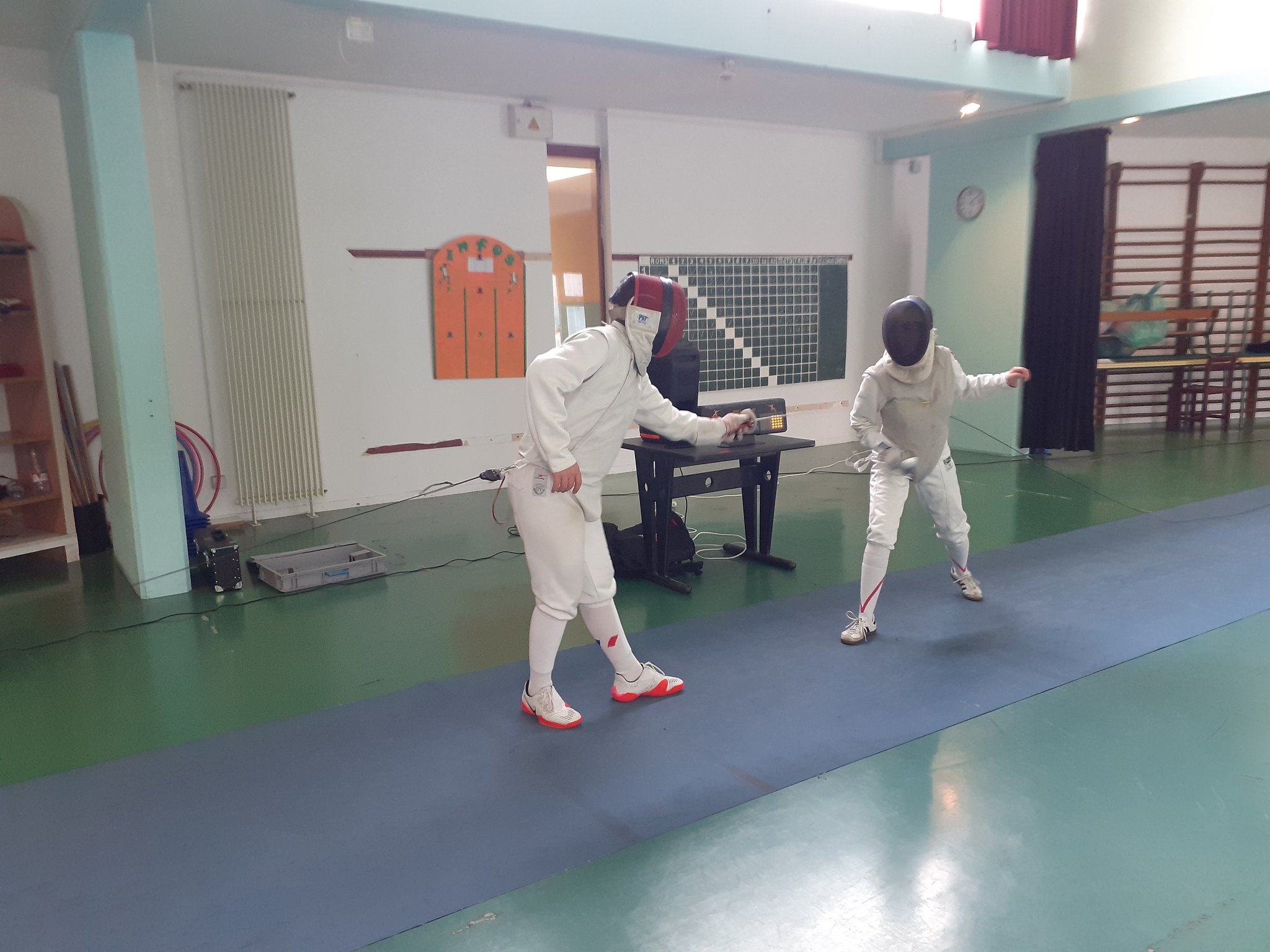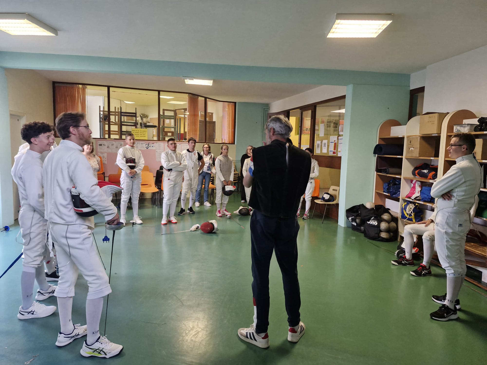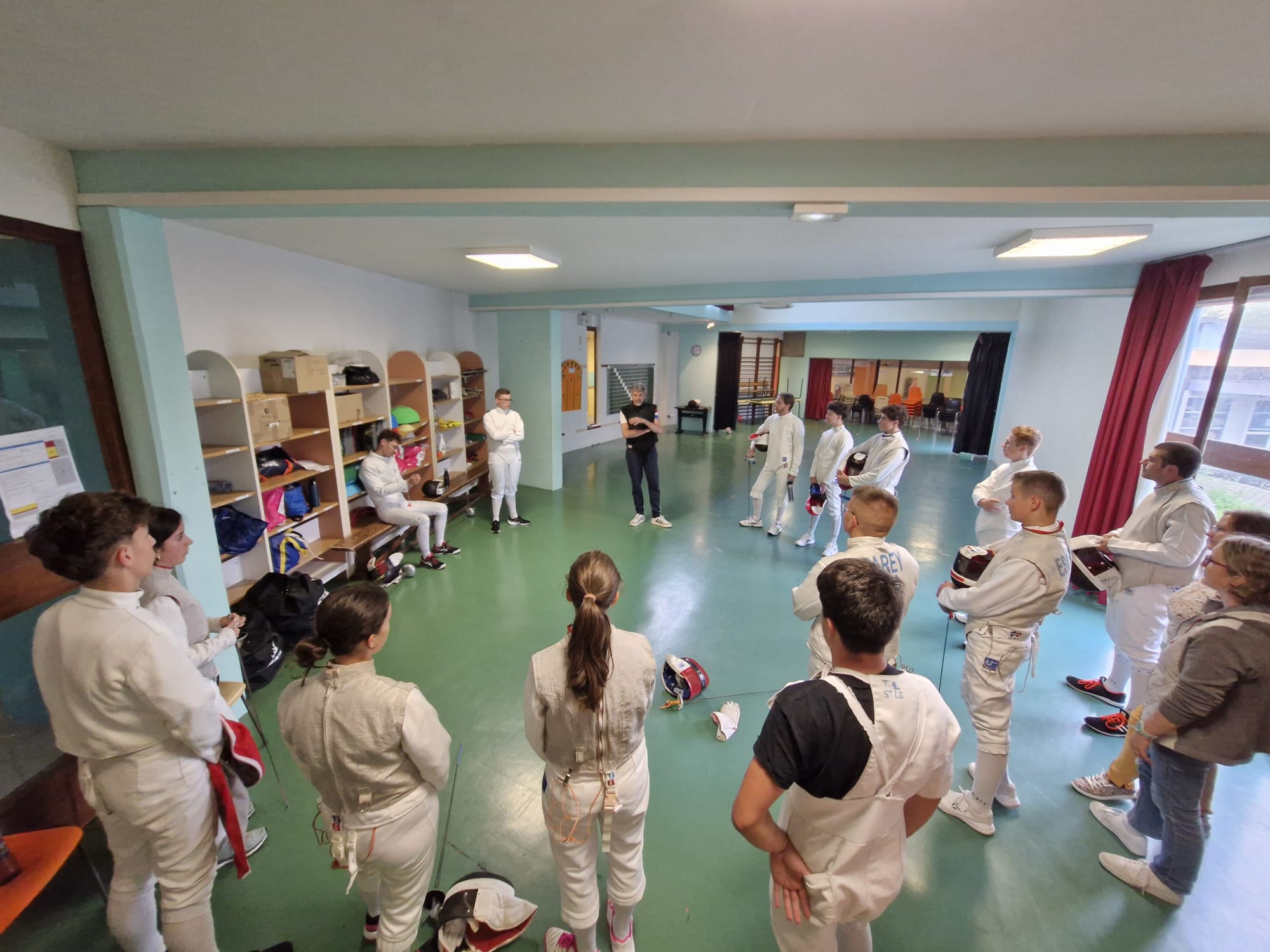 St-Lô Agglo et la ville de St-Lô nous ont alors mis à disposition la salle de l'Aurore à partir du 22 novembre 2023. Mais de part sa configuration, les conditions y sont plus précaires, car nous devons installer les pistes d'escrime avant les entraînements et les démonter après.