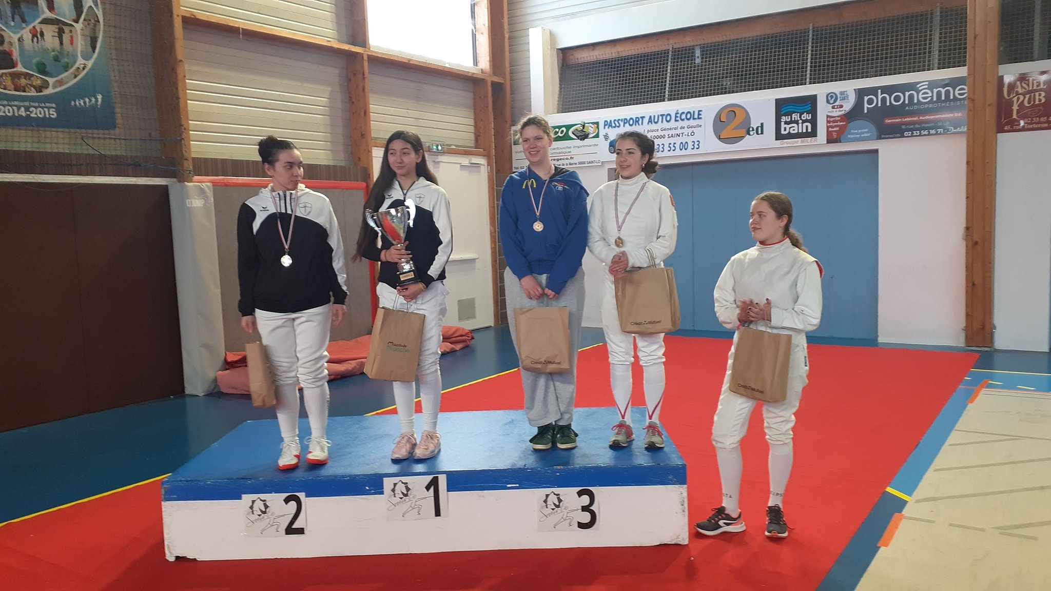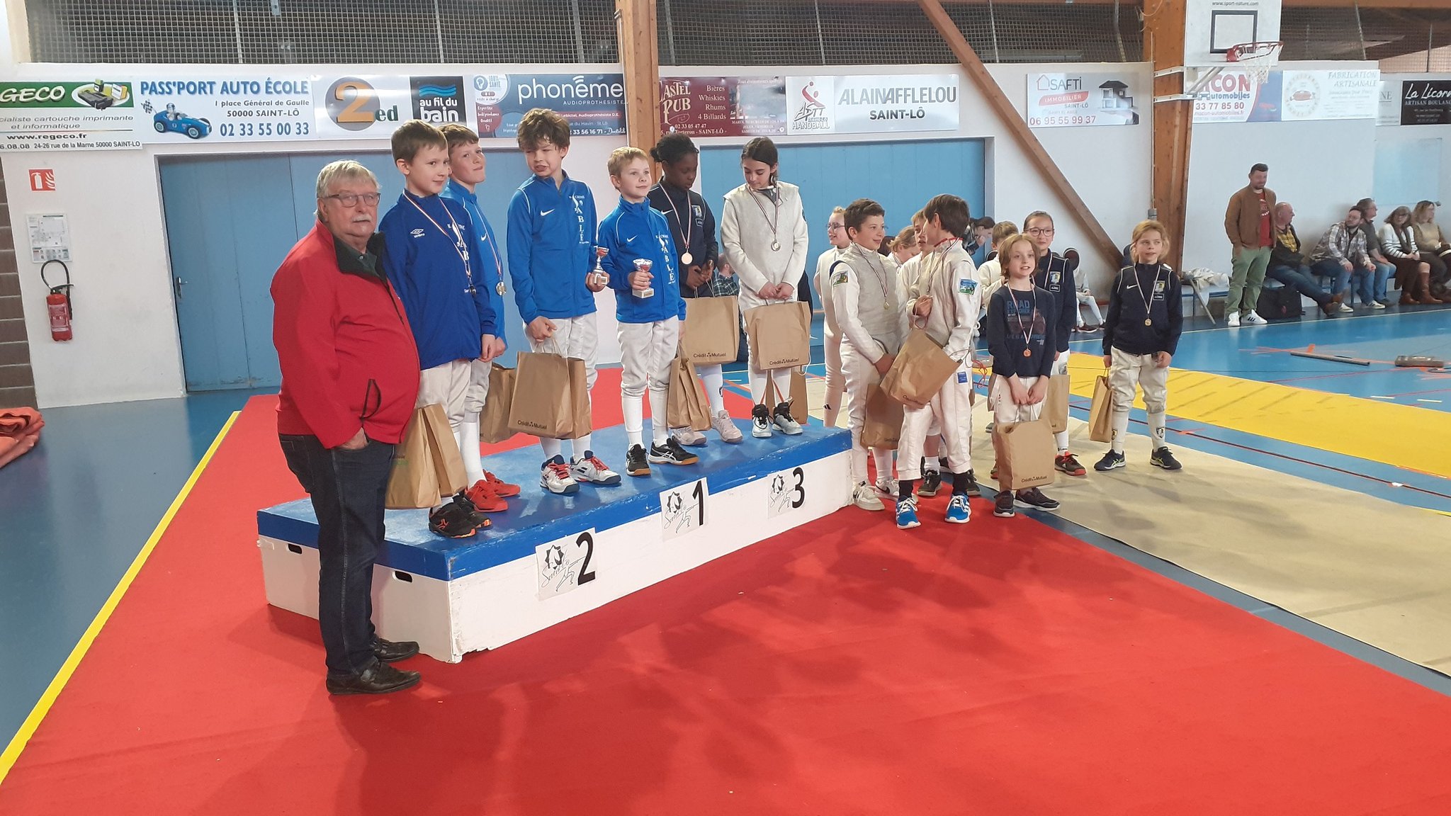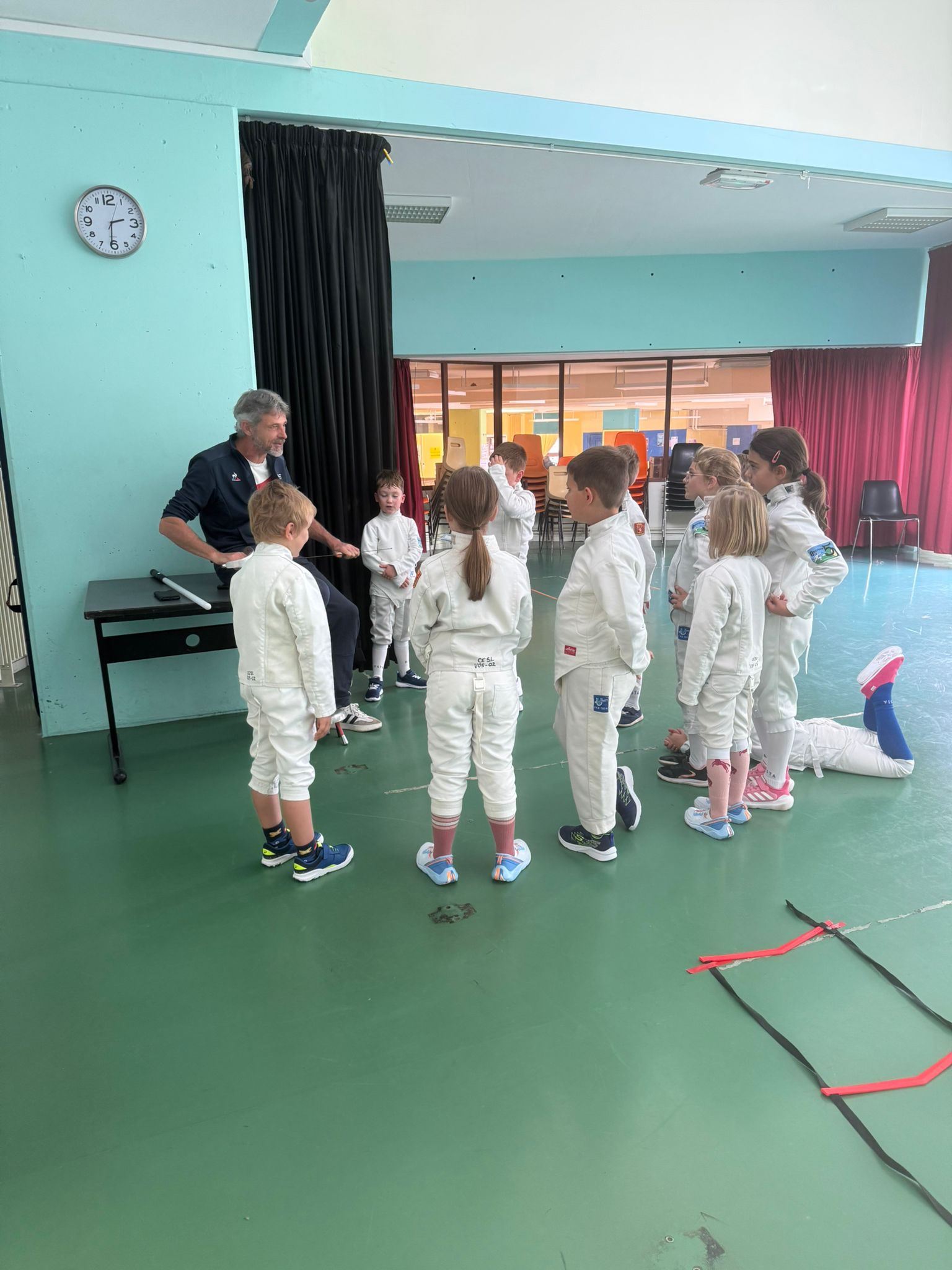 St-Lô Agglo et la ville de St-Lô nous ont alors mis à disposition la salle de l'Aurore à partir du 22 novembre 2023. Mais de part sa configuration, les conditions y sont plus précaires, car nous devons installer les pistes d'escrime avant les entraînements et les démonter après.