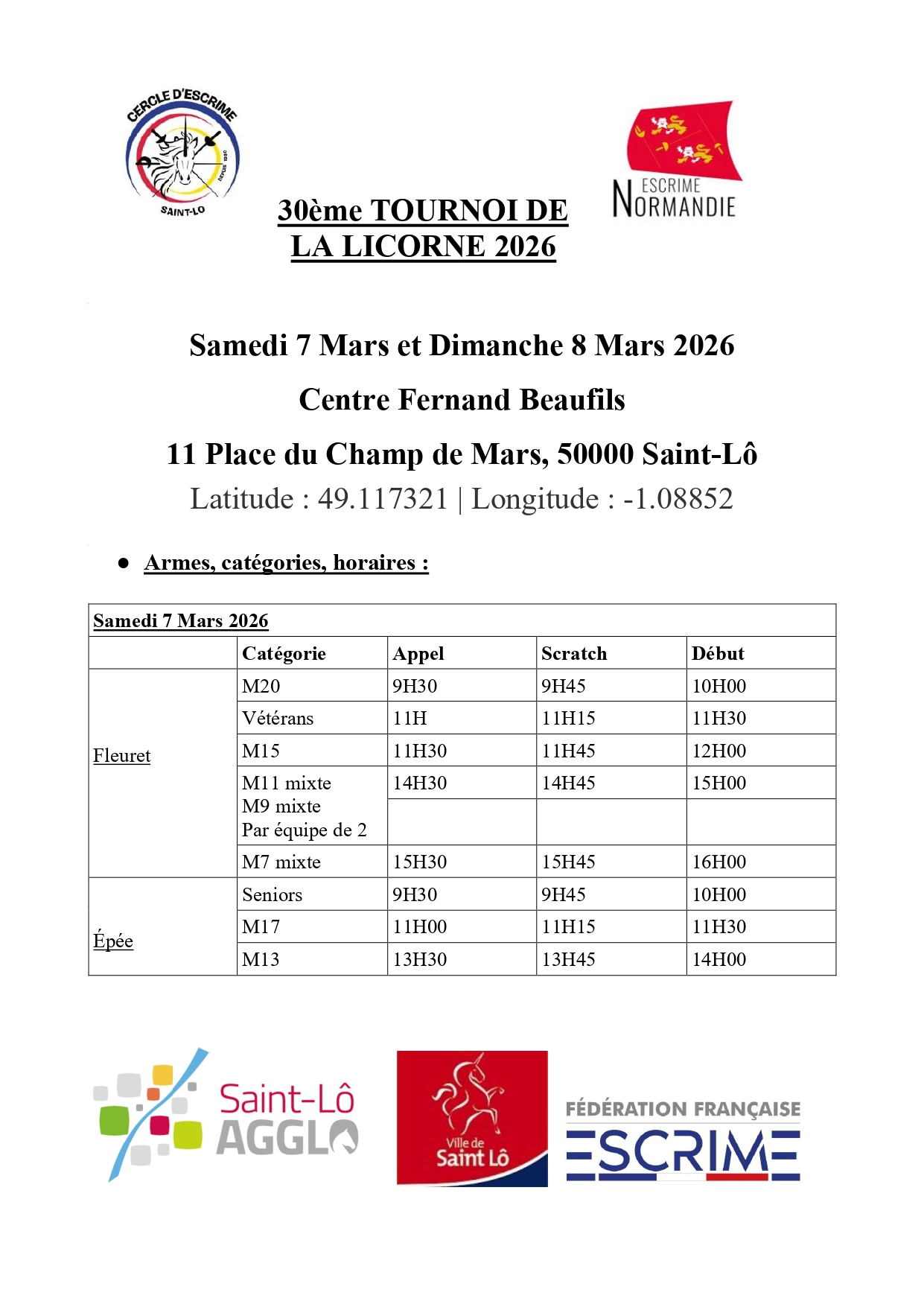 La 30e édition du Tournoi de la Licorne aura lieu les 7 et 8 mars prochain à la salle Beaufils de Saint-Lô. Voici la feuille de route !