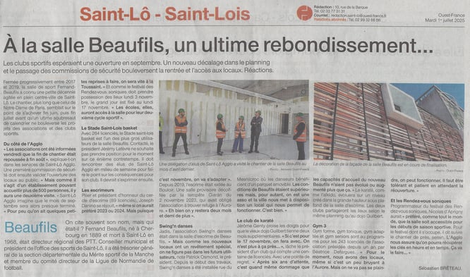 La rentrée de septembre 2025 se fera donc dans la salle de l'Aurore. Et nos licenciés devront encore patienter plus de 2 mois avant de retrouver de bonnes conditions d'entraînement dans la salle Beaufils.