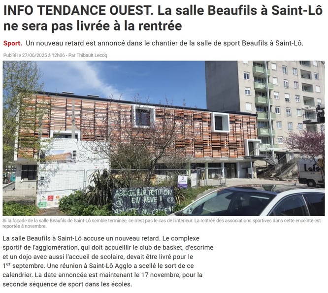 La rentrée sportive de septembre 2025 ne se fera pas au centre sportif Fernand Beaufils, comme nous l'avions espéré. En effet, les clubs concernés ne pourront prendre possession de cet équipement sportif entièrement réhabilité qu'à la mi-novembre, après les Rendez-vous soniques.
